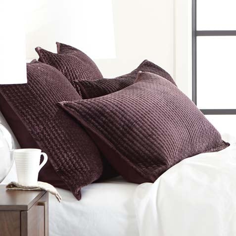 Enjoy the luxurious look and feel of velvet quilted bedding; it's the epitome of simple sophistication. A modern quilt pattern, the vertical channel, delivers soft yet sumptuous texture while clean-edged hems exude a captivatingly classic look. Fashioned in a rich beet color, this versatile velvet bedding complements modern and traditional styles alike.