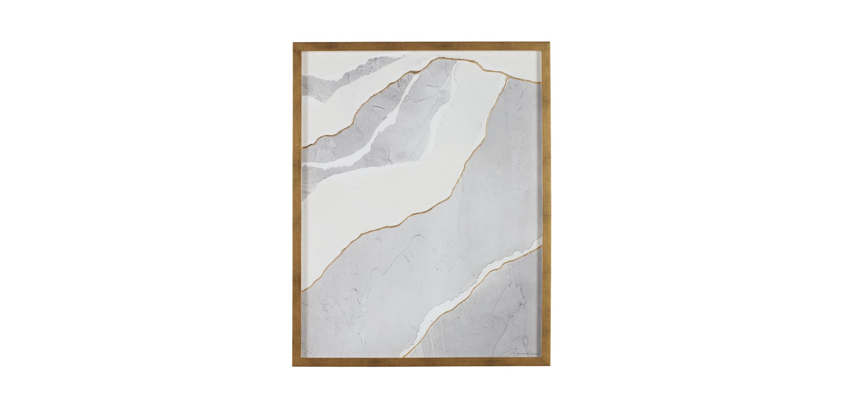 Geography goes glam in these layered rock formations, which feature textured embellishments and brilliant hand-leafed highlights. Neutral and gold make this a gorgeous conversation piece for a formal and modern spaces alike.