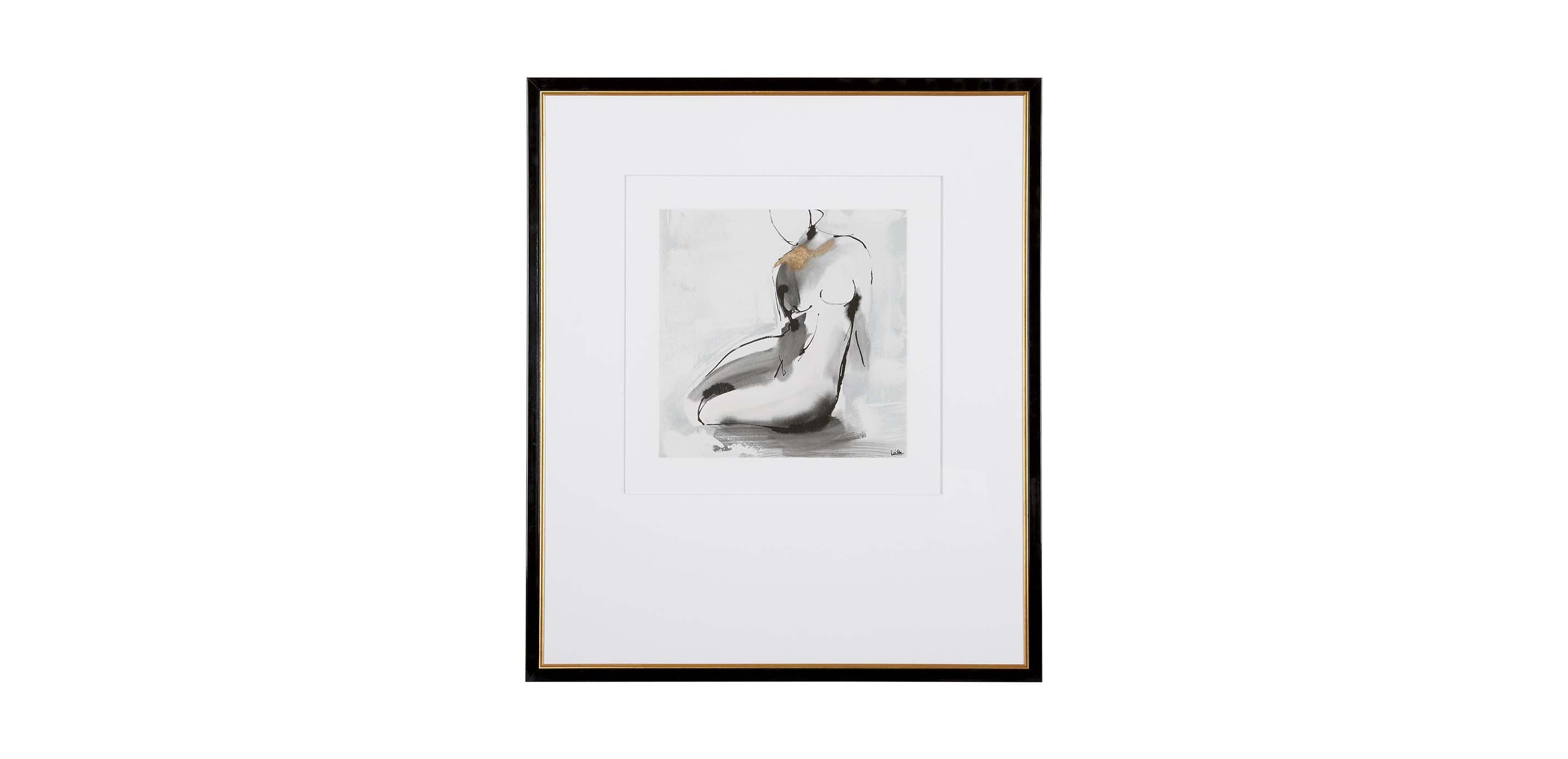 These evocative, abstract nudes by artist April Lake are arresting in their simplicity. Display them where a dash of sophistication is desired; hang Yin I and Yin II together for added drama. The hand-embellished giclées on paper are mounted with 6-ply white mats in contemporary black lacquered frames with gold fillets.