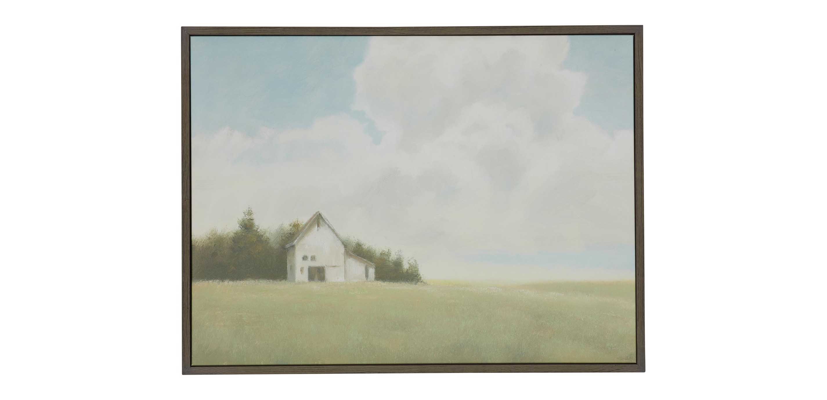 Working from his studio surrounded by majestic mountains and rivers, artist James Wiens immerses himself in the natural world he renders so masterfully. Here, with airy brushstrokes, he captures the expansive peace and idyllic grace of the American farmland in this landscape print. Step right in and watch the clouds waft by.