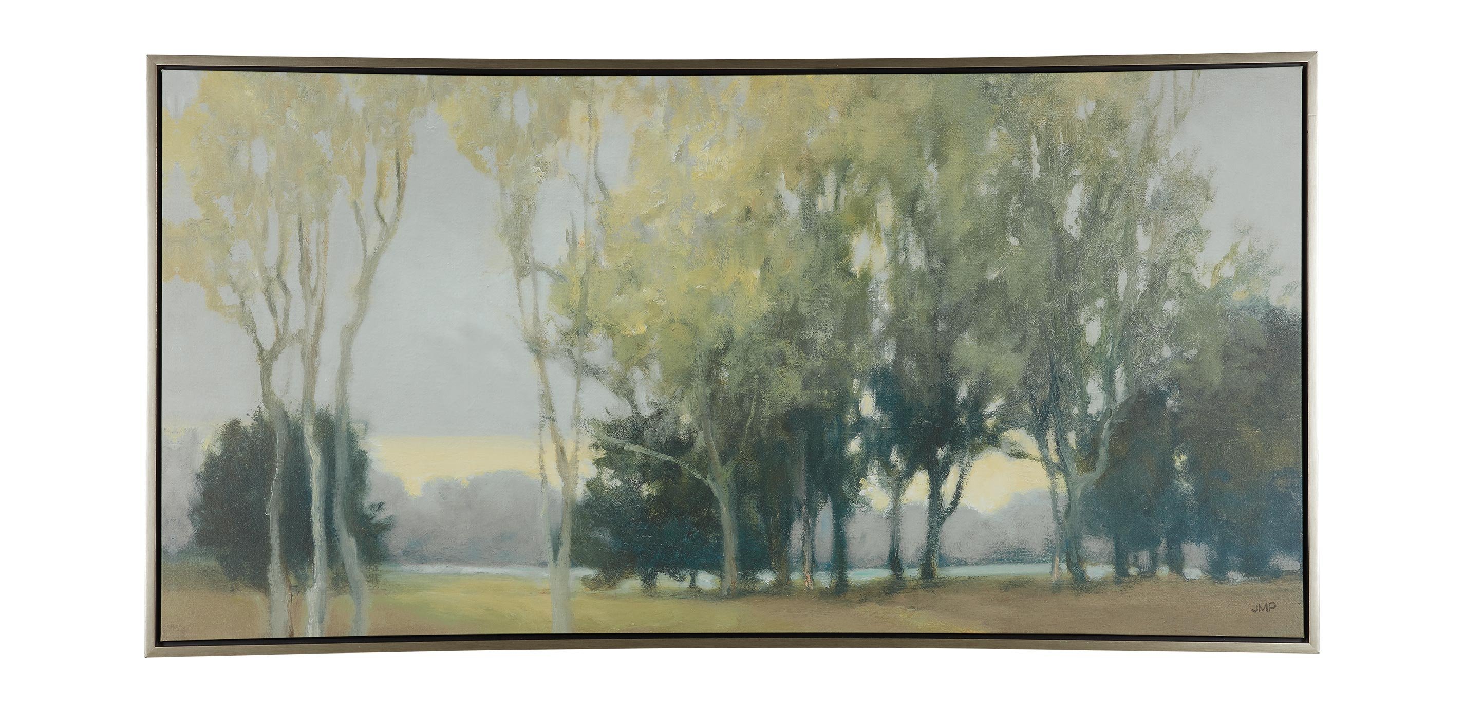 - Artist - Julia Purinton: The atmospheric mood and glow of Julia Purinton’s work is achieved by layering layers upon layers of glaze over her oil and acrylic paintings. Hidden Lake, painted in luminous shades of sage and forest green with layers of watery blues, is a peaceful and elegant addition to any room in the home.