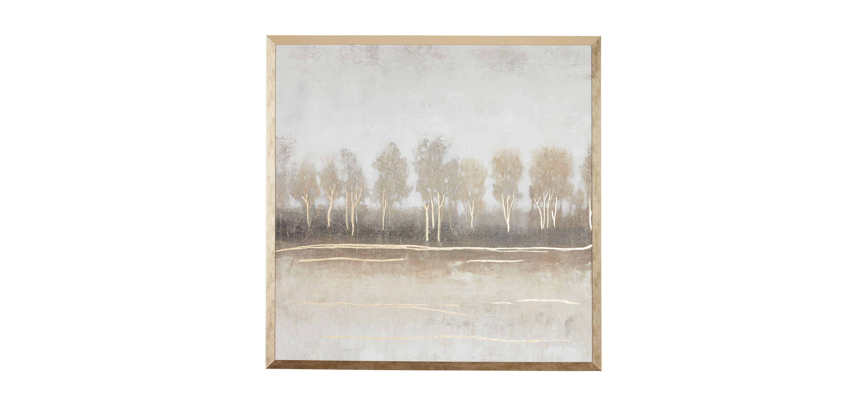 Neutral hues combine with thick impasto textures and dramatic gold leaf embellishment to create these serene yet melancholy landscapes by artist Tim O'Toole. A series of two.