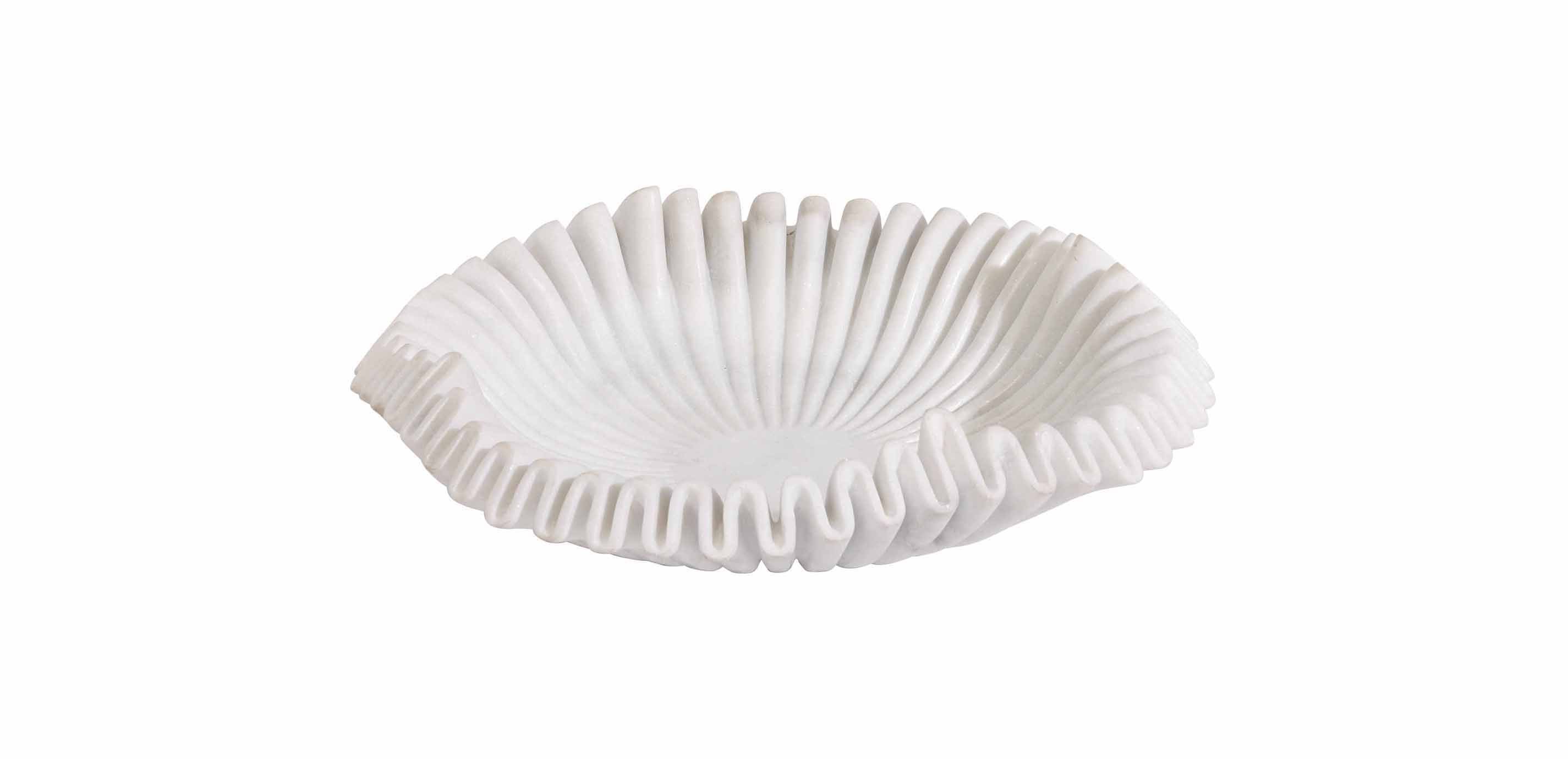 Our pure Indian marble coral bowl shares part of its story with perhaps the most breathtaking memorial ever created. The exquisite white marble used to build the Taj Mahal was mined in Rajasthan, just as the marble for this bowl is. The artisans who came to the region during its construction in the 1600s settled there, and their descendents carry on their work today. The bowl’s deep scallops are carved, shaped and polished entirely by hand. The rendering of each bowl is a masterpiece in and of itself, and every one is unique.