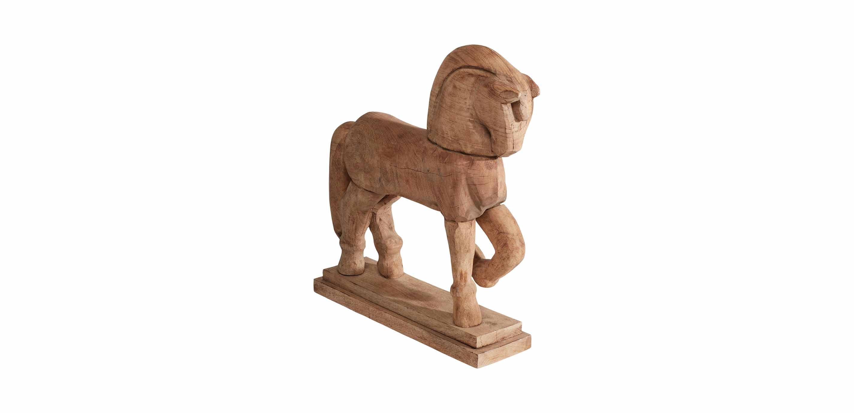 Whitewashed to mimic the look of natural barnwood; no two of these hand-carved horse sculptures are exactly alike. Artisans sculpt individual pieces from mango wood, playing with proportion before putting everything together to create its final form. The result: a decidedly modern sculpture with a lightly weathered, time-loved character.