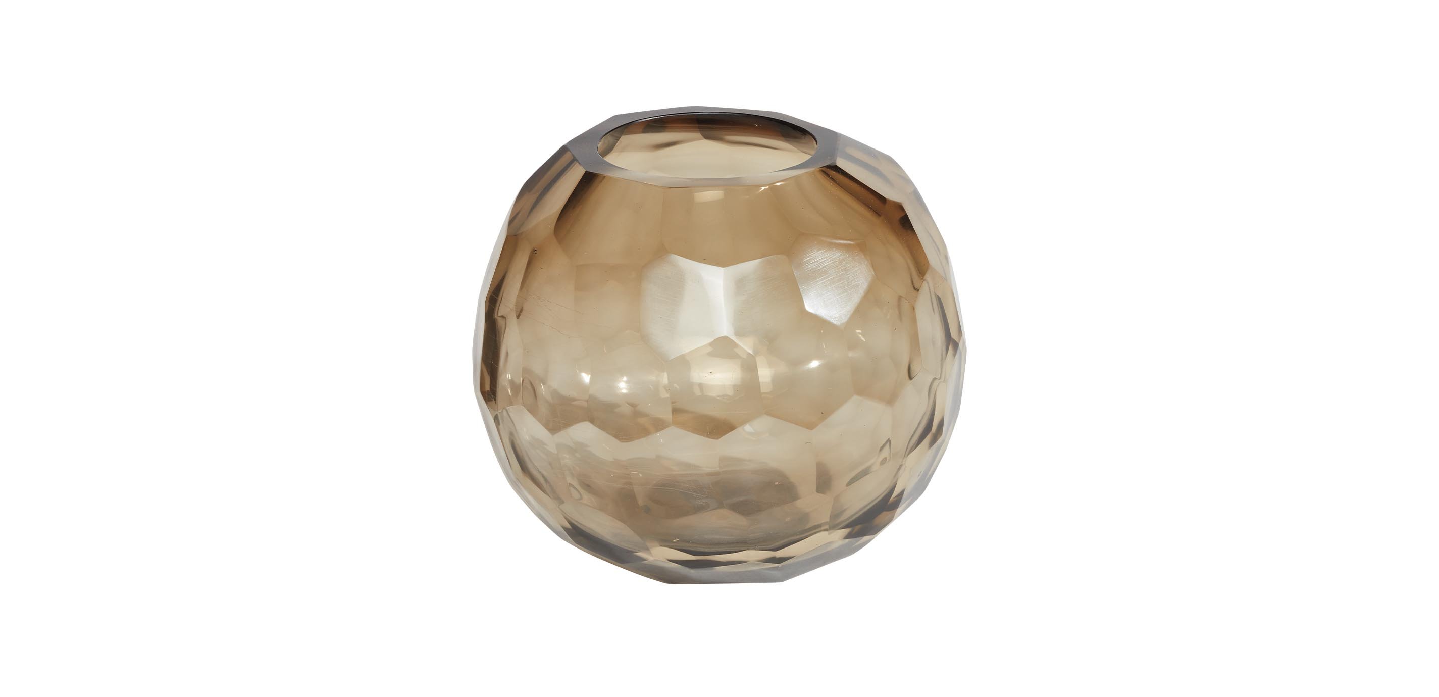 - Midsized gray glass vase with hand-cut surface pattern