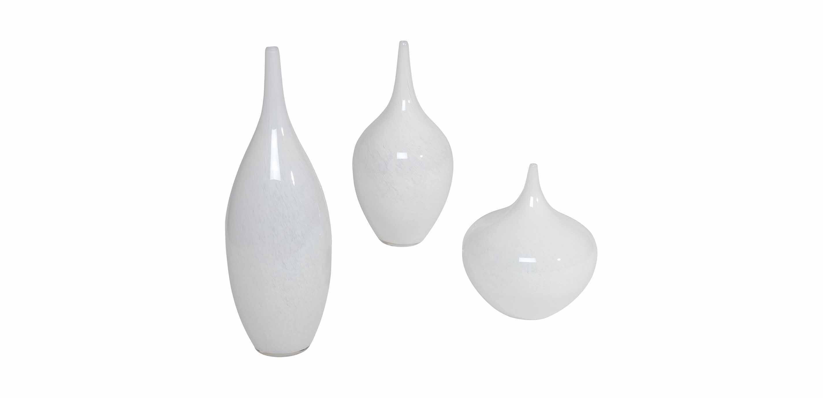 • Crafted from mouth-blown, white colored glass; each vase has a graceful shape and a substantial feel for an elegant vibe