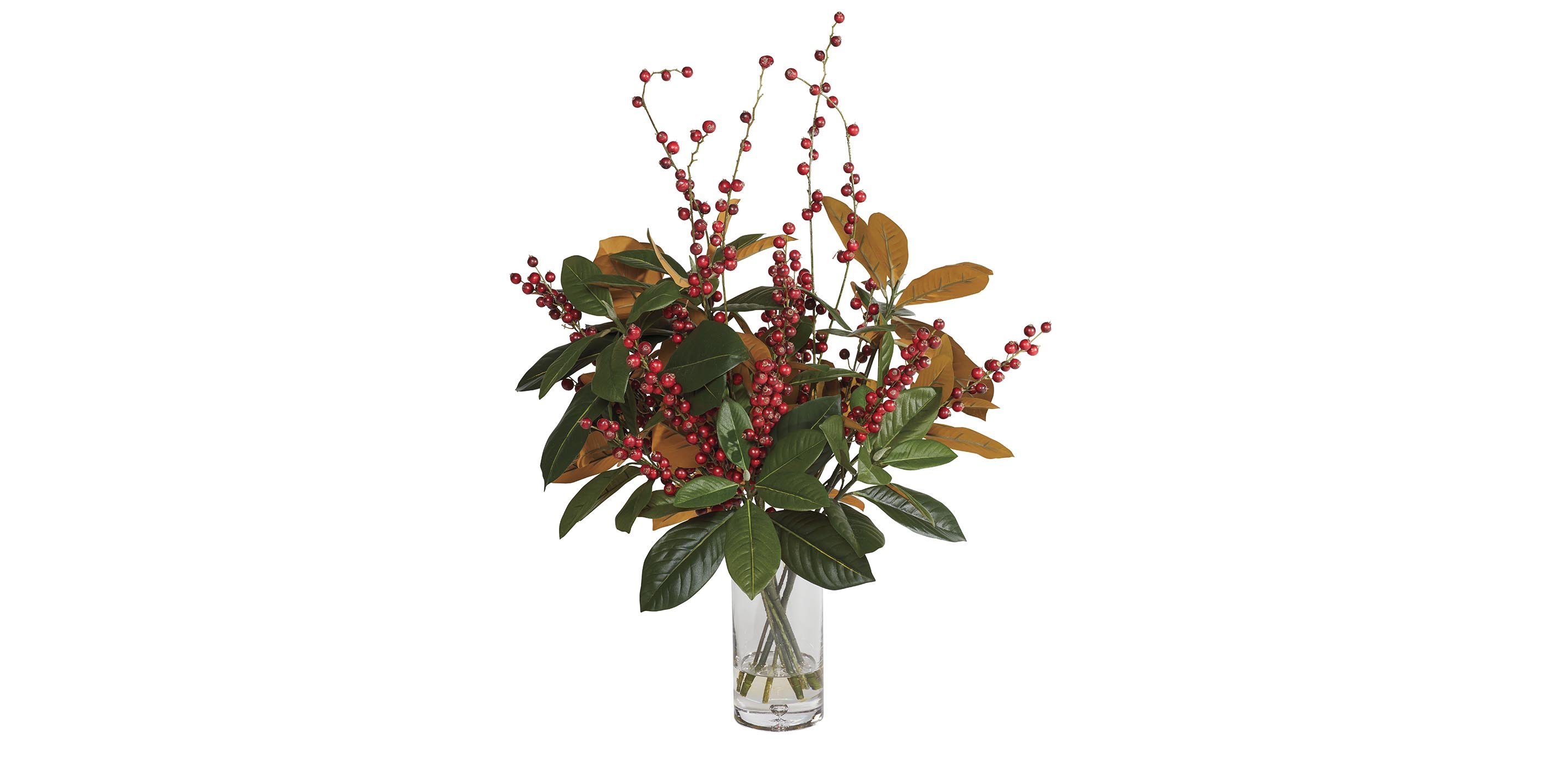 This arrangement of faux winterberries and magnolia leaves brings beloved seasonal colors to the table no matter the time of year. Choose the seasonal colors that inspire you: autumn's cranberry and goldenrod, or winter's ruby and emerald.