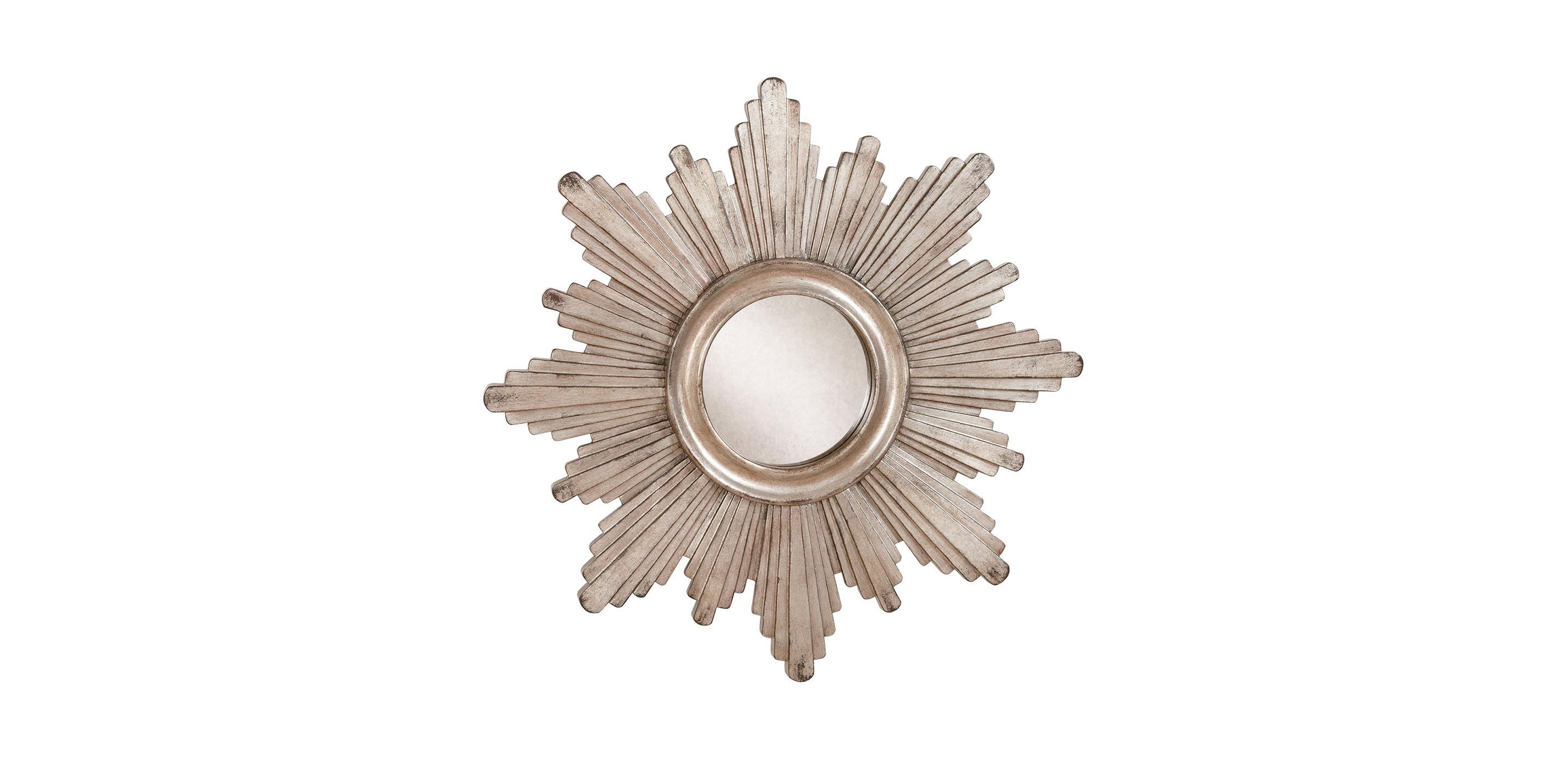 Rays of different lengths and heights give this mirror its unique scalloped silhouette. The finish is applied by hand; the mirror glass has been antiqued by hand, too.