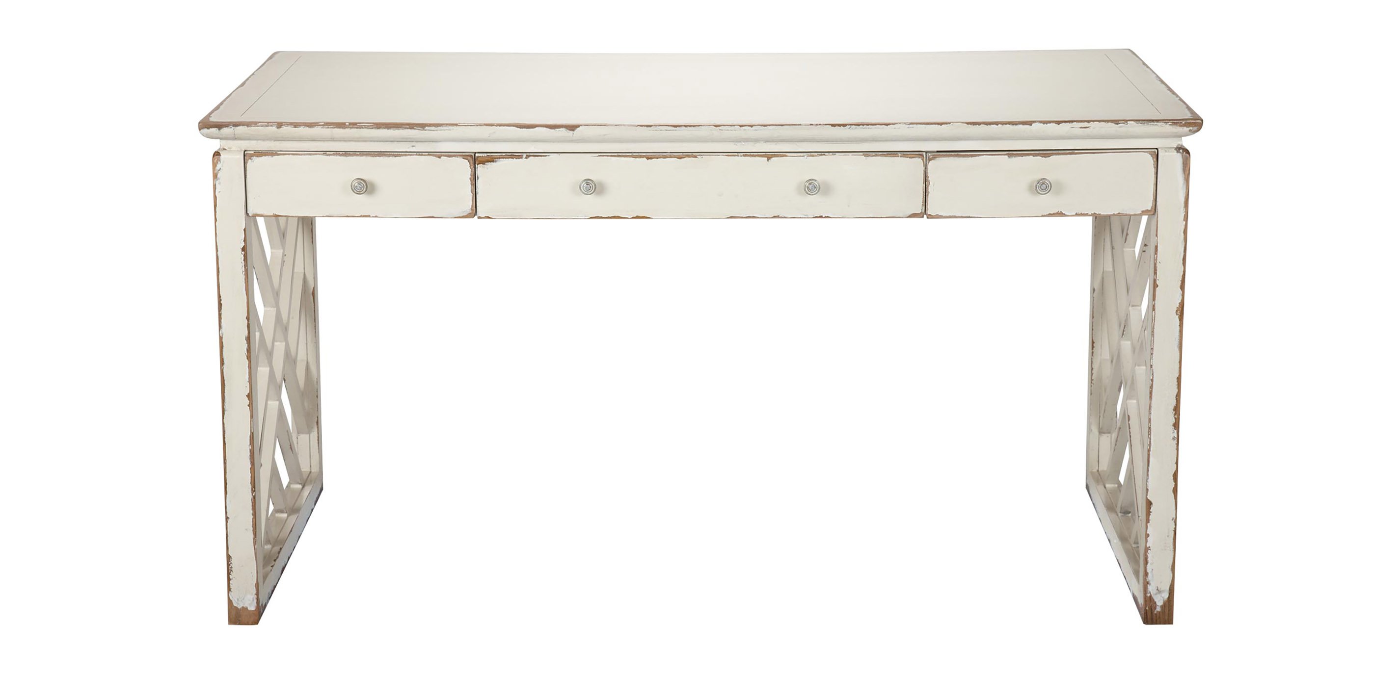 A desk that blends modern versatility with Chinese Chippendale styling cues. Fretwork sides give Dynasty its drama. The desk is available in three finishes, each rubbed and distressed by hand to capture the appeal of a much-loved antique. Additional pieces in the Dynasty collection include the Dynasty Rectangular Coffee Table, Dynasty Square Coffee Table, Dynasty End Table and Dynasty Fretwork Side Table.