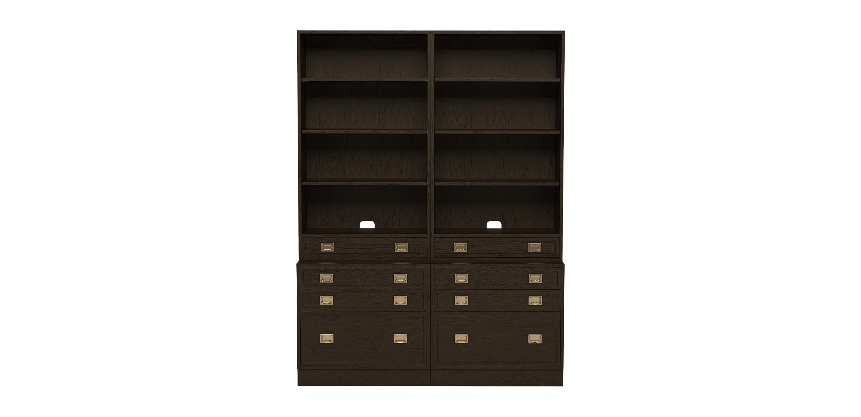Whether you're using it in the office or to display your collectibles, the Callum group delivers storage with style. The shelves are adjustable and the file cabinet has a deep file drawer plus two small upper drawers for functional storage, but it's the throwback, campaign-style design that truly sets it apart. Its clean lines and inset, brushed brass-plated campaign hardware make this cabinet look like it has traveled the world—and only you'll know it's never left your home.