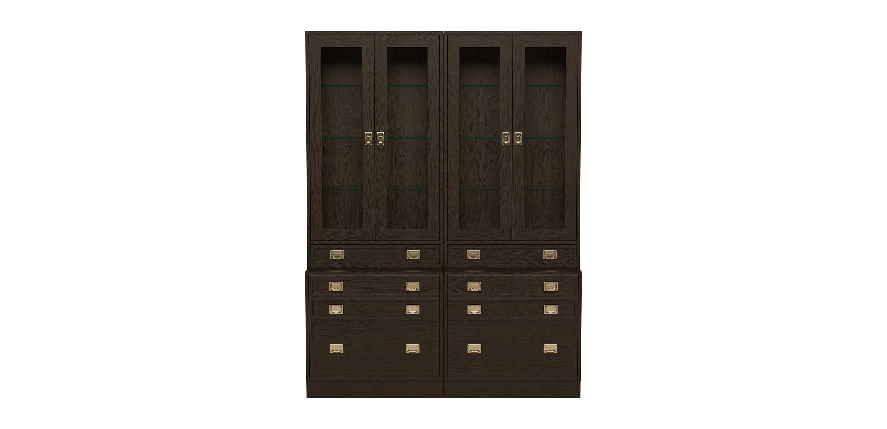 Whether you're using it in the office or to display your collectibles, the Callum group delivers storage with style. The shelves are adjustable and the file cabinet has a deep file drawer plus two small upper drawers for functional storage, but it's the throwback, campaign-style design that truly sets it apart. Its clean lines and inset, brushed brass-plated campaign hardware make this cabinet look like it has traveled the world—and only you'll know it's never left your home.