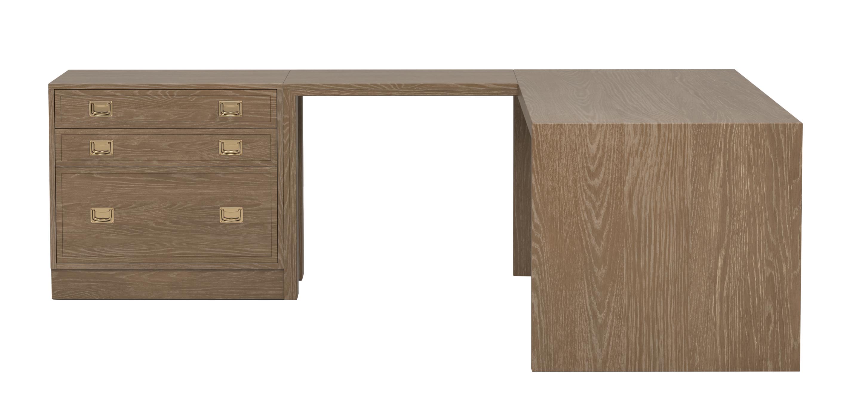 Welcome to an oasis of function and fashion that can squeeze into any nook. Our Callum office island brings plenty of file storage and a roomy Parsons-style desk together under the modern umbrella of reimagined British campaign style.