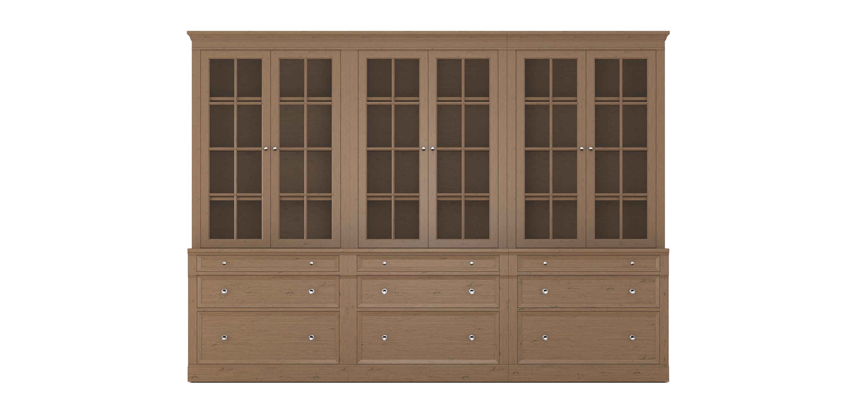 The Continental Triple File Bookcase with Glass Doors is comprised of the following pieces:
