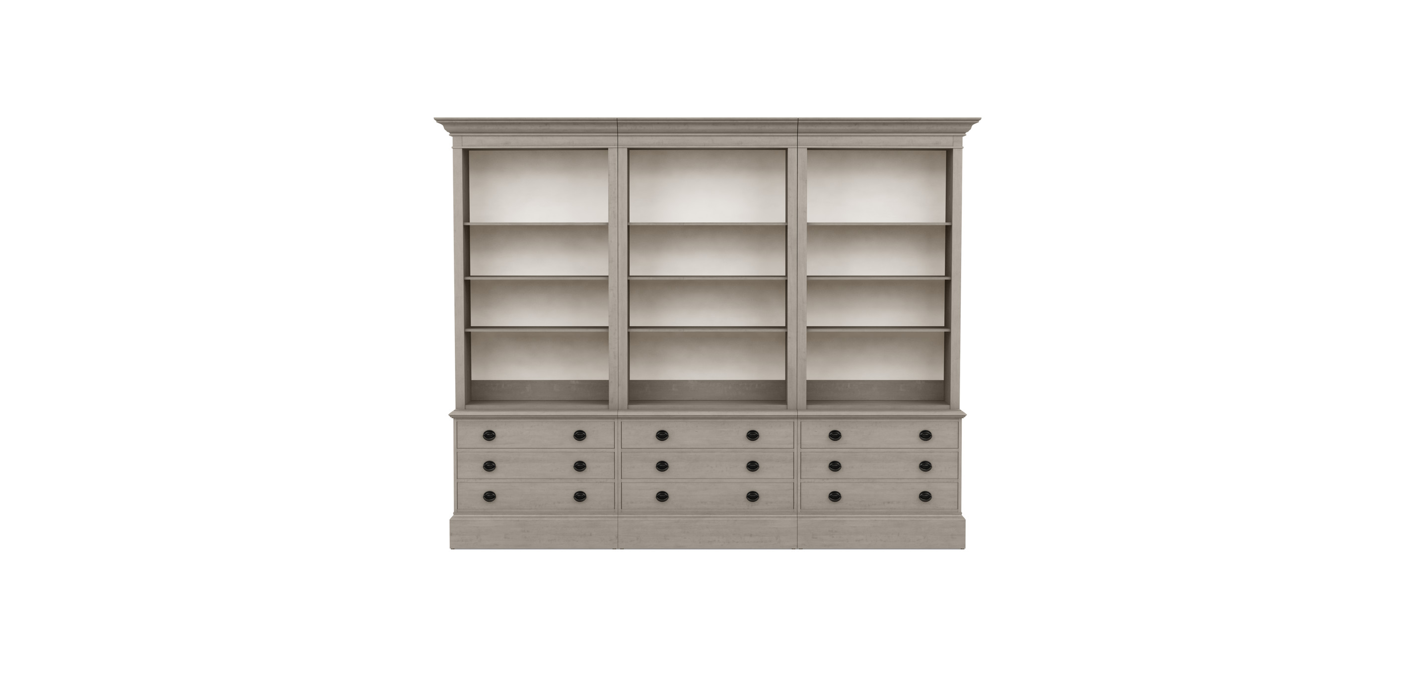 The Villa triple file bookcase is comprised of the following pieces: