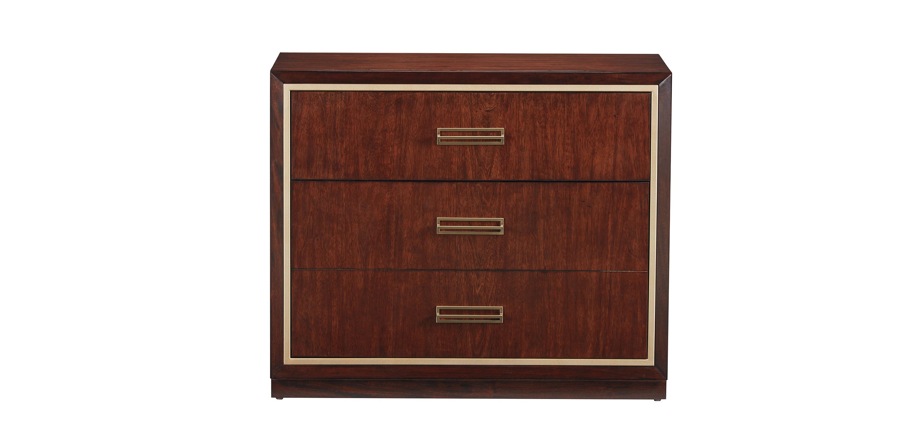 File it under "fashionable" and "functional"; either applies to our Faraday Classic file cabinet, which features a deep lower file storage drawer plus an upper drawer for smaller items. Its simple mitered frame is dressed up with hand-applied walnut veneers, plus a gleaming decorative inlay and linear hardware finished in Satin Gold.
