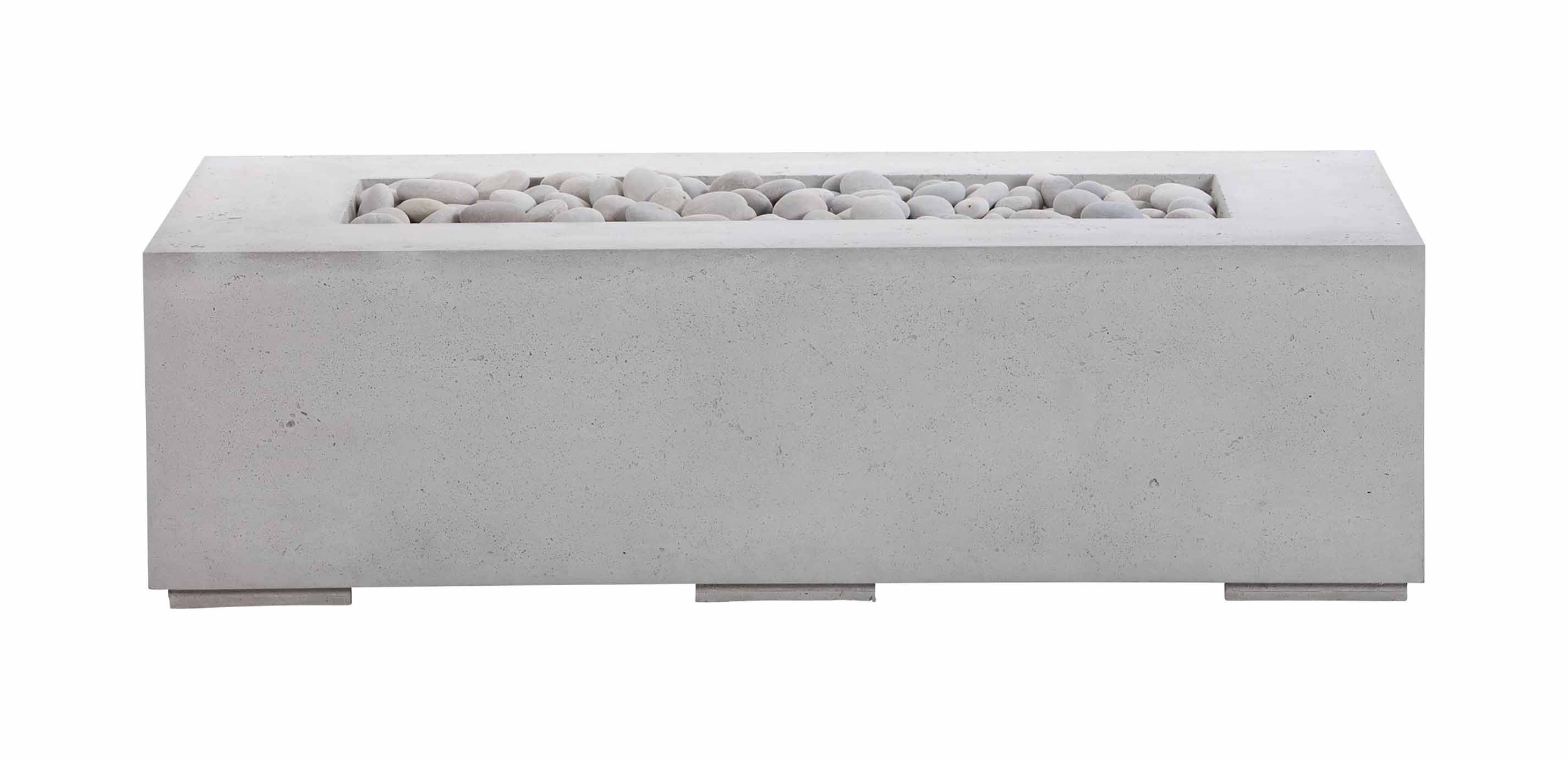 Create a focal point and warm up your outdoor room—literally—with our rectangular fire table. Fashioned of concrete and topped with natural beach stones, it adds style to your hardscape and a calming vibe to any open-air space. So relax; the cozy ambience of a flickering fire is only ever seconds away. We offer a square fire table too; both are available with either fuel source.