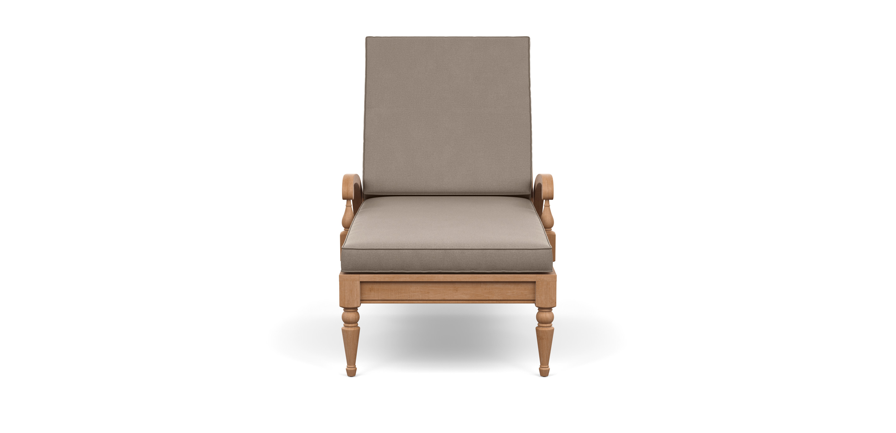 One part English garden. One part West Indies lanai. Our Millbrook collection is built to last and looks great doing it. The chaise has a slatted adjustable back, a convenient slide-out tray, beautifully detailed carvings, and two welted box cushions.