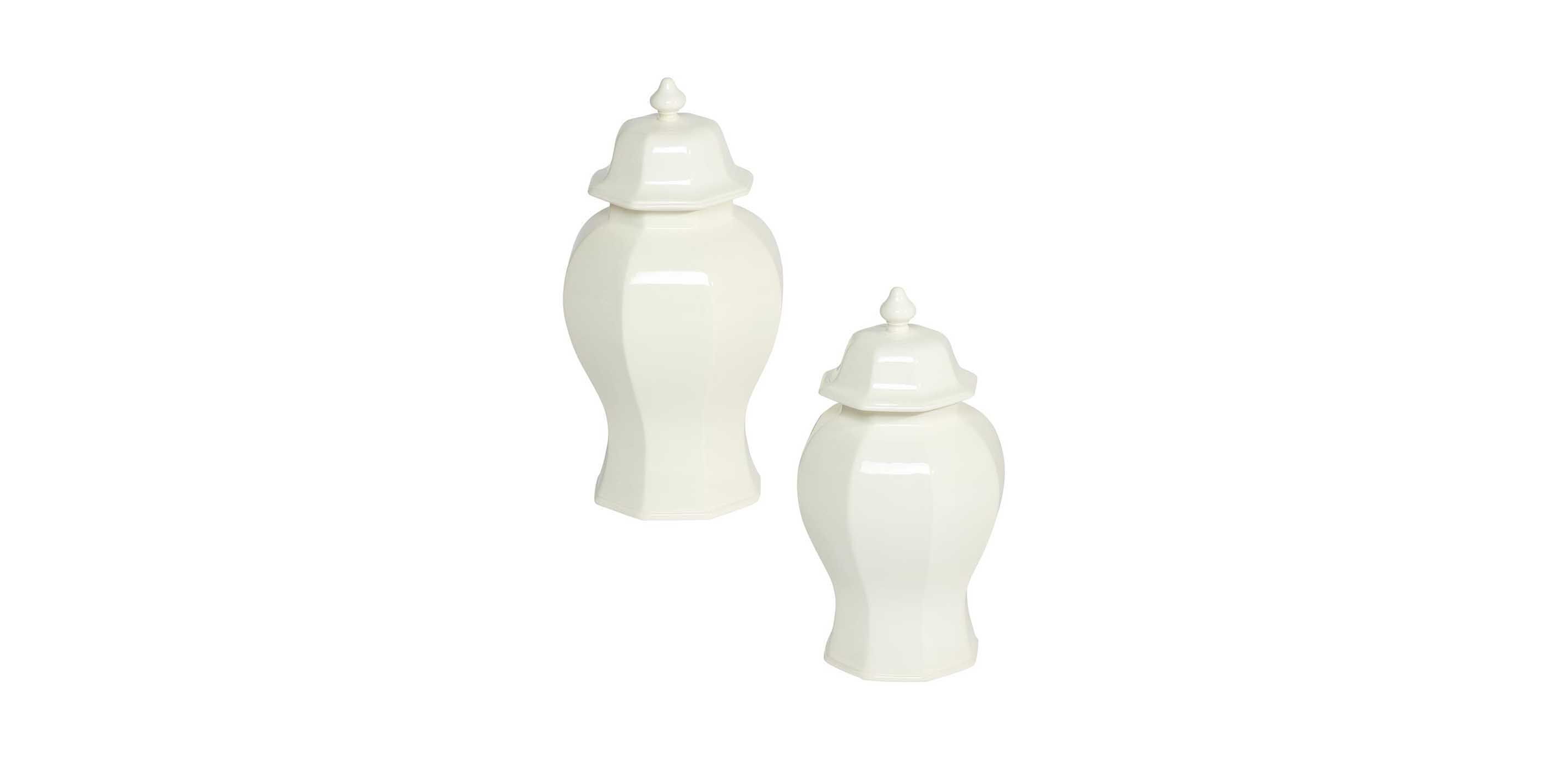 Decorative temple jars are a mainstay of chinoiserie décor, but this is a traditional ceramic jar with a difference. Its high shoulders, small mouth, and domed lid are true in form to the original ginger jar, but it’s uniquely geometric, giving it a more eclectic (even modern) feel. Artisans use a time-honored technique to apply the glaze, which is smooth and glossy—and enchanting.